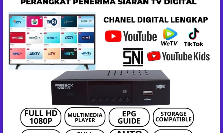 | Freebox STB DVB-T2 | – | Full HD, PVR, EPG, simpan 1000 channel, LCN, HDMI, USB, RCA |