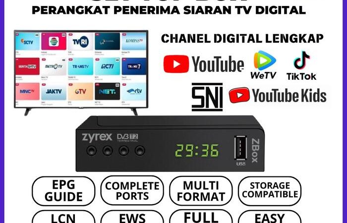 | Zyrex ZBox-1 | 1 Tahun | Full HD, EWS, EPG, LCN, HDMI, USB, RCA, support MP4/MKV/AVI/MP3 |