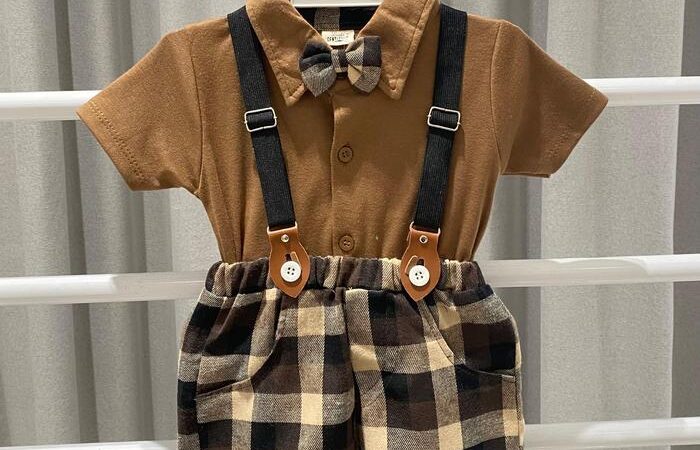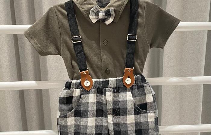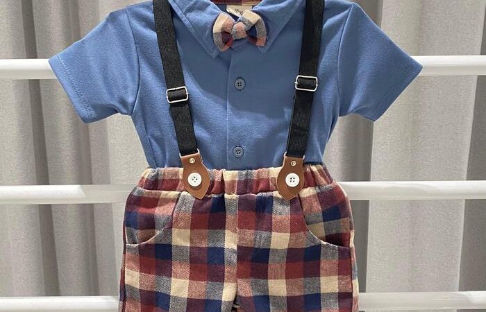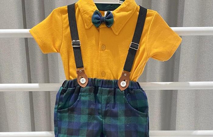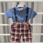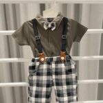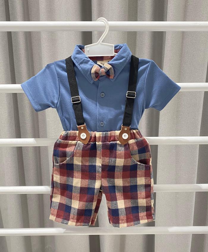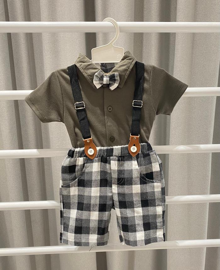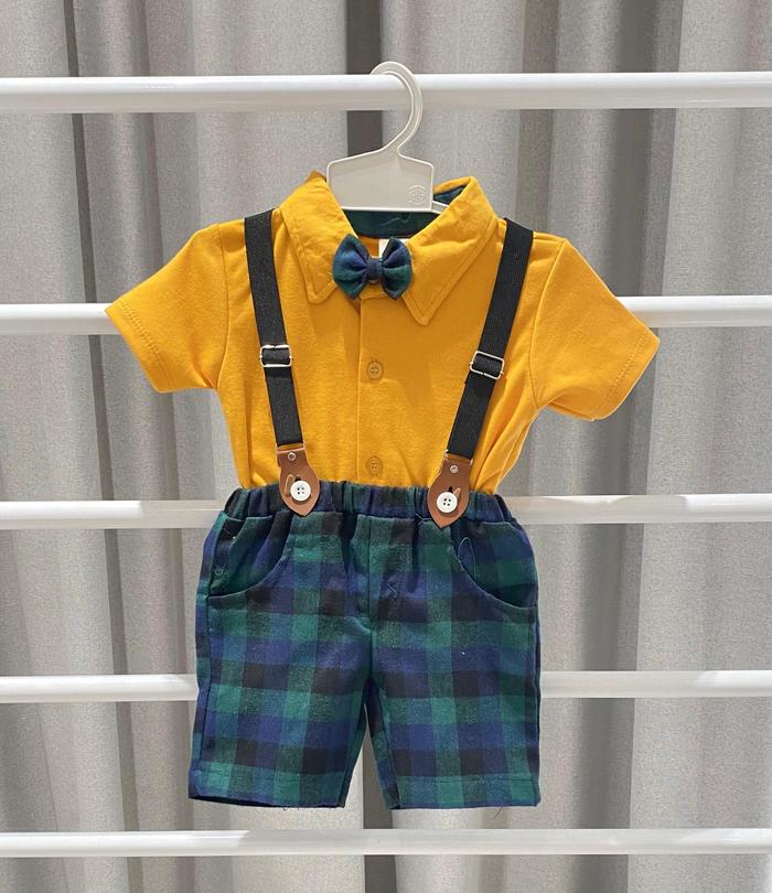 | Model | Baju jumper bayi laki-laki dengan suspender (eggy suspender), dilengkapi dasi dan topi. |