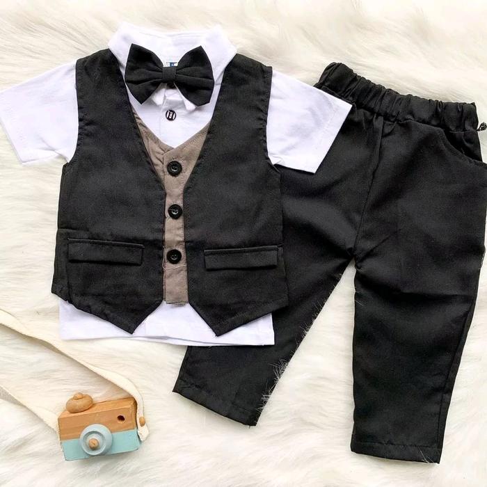 Tampilkan kesan elegan dan menggemaskan pada setiap momen berharga buah hati Anda dengan Setelan Baby Tuxedo kami. Dirancang khusus untuk acara kondangan, pesta ulang tahun, atau perayaan formal lainnya, setelan ini akan membuat si kecil tampil seperti gentleman cilik yang sangat menawan. Cocok untuk anak laki-laki usia 1 hingga 7 tahun.