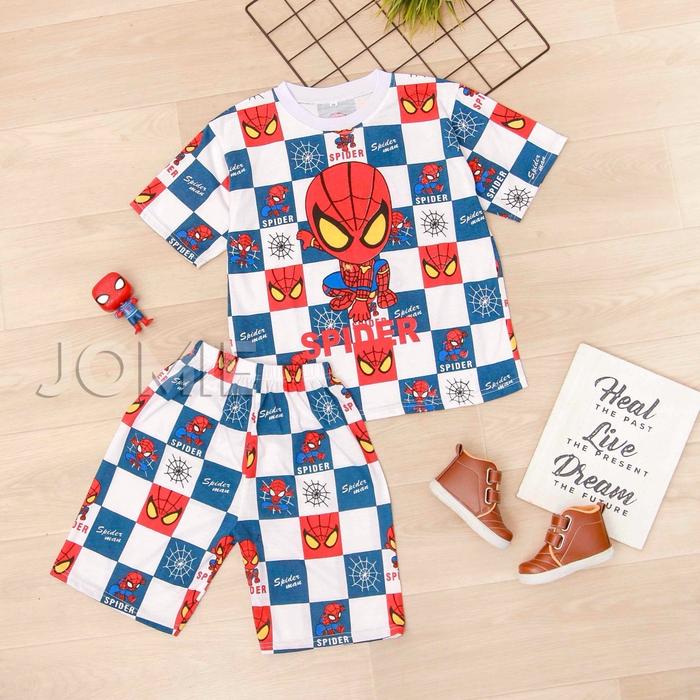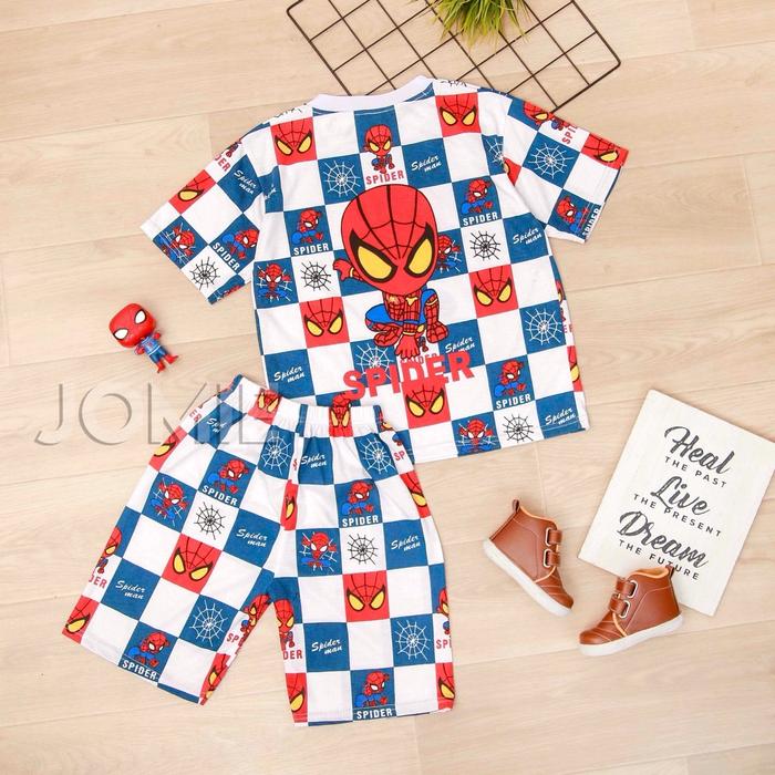 Wujudkan impian si kecil menjadi pahlawan favoritnya! Setelan Spider-Man ini didesain khusus untuk kenyamanan bermaximal dengan bahan katun PE pilihan yang lembut dan menyerap keringat, membuat anak bebas bergerak dan berpetualang tanpa rasa gerah. Perhatikan bahwa celana didesain tanpa kantong untuk keselamatan dan kenyamanan bermain.