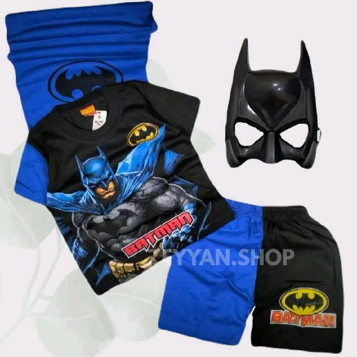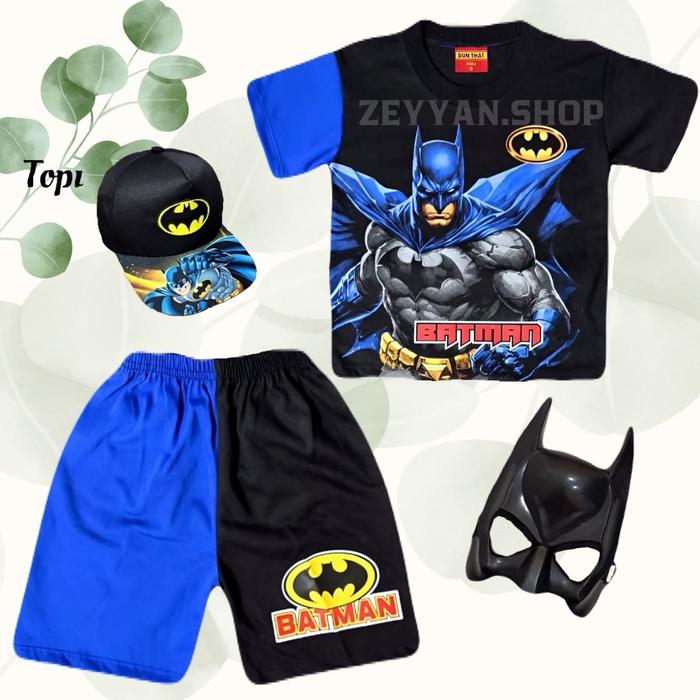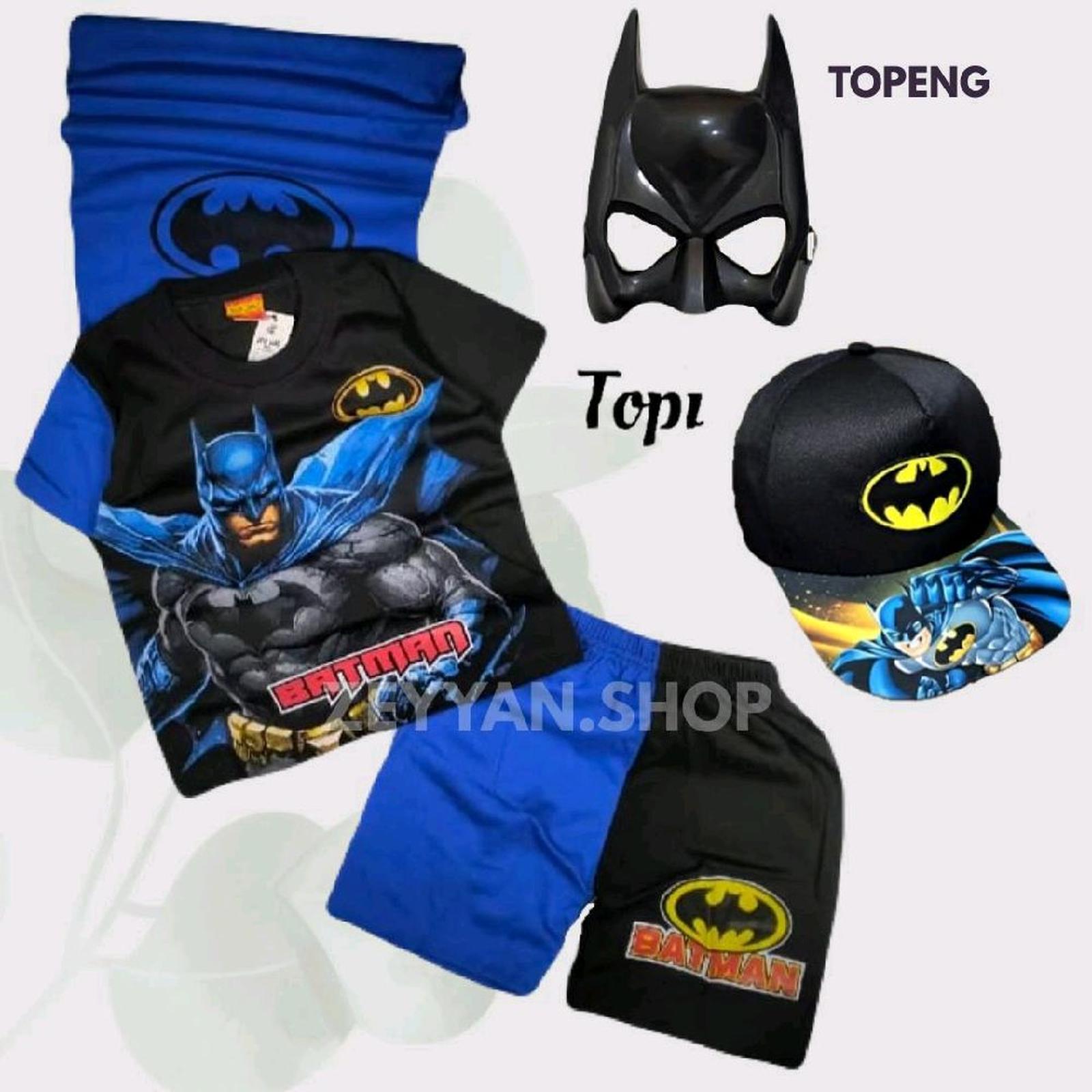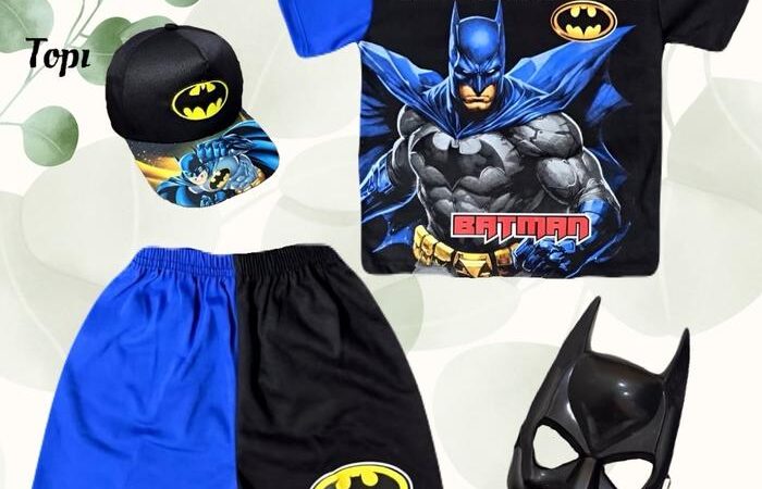 | Desain Eksklusif | Setelan unik bergambar Batman dengan sayap yang keren, dilengkapi topi dan topeng untuk pengalaman bermain yang imersif. |
