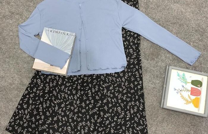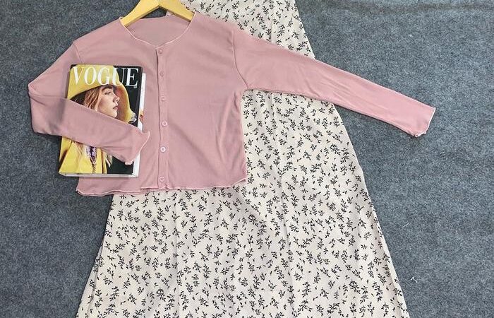 | Desain | Cardigan crop pendek + rok motif high-waist, cocok untuk mix & match |
