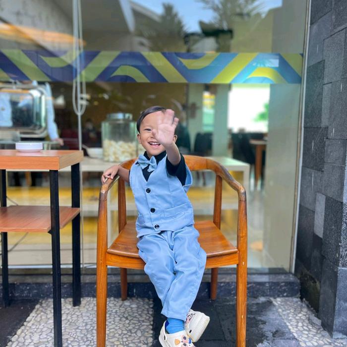 Tampilkan penampilan istimewa si kecil dengan setelan jas tuxedo berwarna biru langit yang menawan. Dirancang untuk acara spesial seperti pernikahan, ulang tahun, atau foto keluarga, setelan ini memberikan kesan yang sophisticated dan menggemaskan. Kualitas bahan terpilih menjamin kenyamanan anak selama beraktivitas.