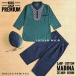 Bahan tebal berkualitas tinggi, dijamin adem dan lembut untuk kenyamanan sepanjang hari. Setelan ini terdiri dari baju, celana, dan kopiah yang lengkap, cocok untuk acara formal maupun sehari-hari.
