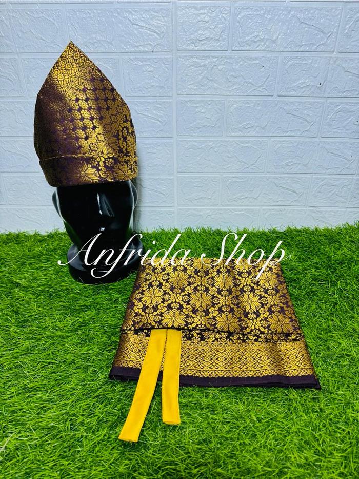 Tampil percaya diri dan berwibawa dengan setelan lengkap Tanjak Songket Palembang yang elegan. Karya tradisional kami dibuat dengan teliti, menggunakan benang songket berkualitas tinggi untuk menonjolkan keistimewaan Anda dalam setiap acara penting, seperti pernikahan, wisuda, atau upacara adat.
