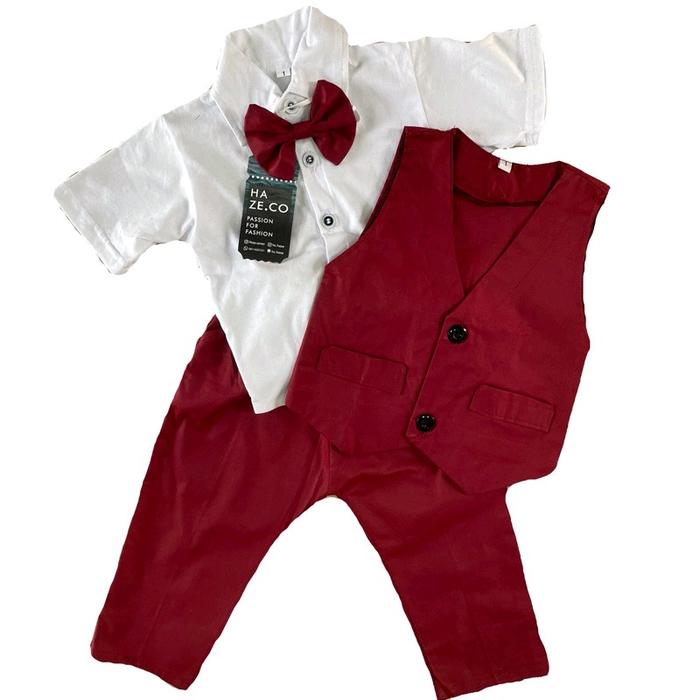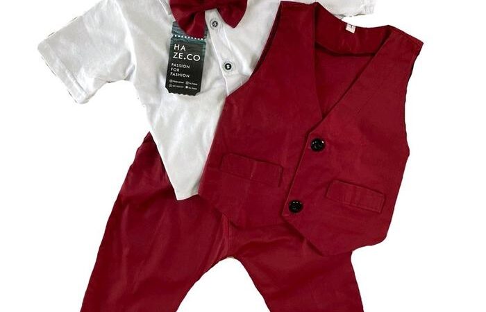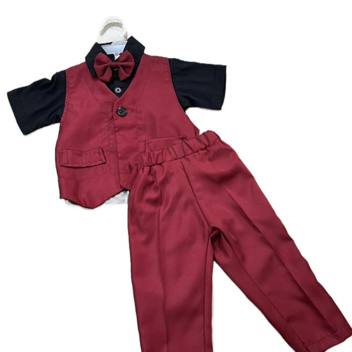 Hadirkan momen spesial buah hati dengan tampilan yang elegan dan menggemaskan. Setelan tuxedo ini dirancang khusus untuk memberikan kesan formal nan menggemaskan pada acara penting seperti pernikahan, foto studio, atau hari raya. Warna maroon yang timeless dan klasik membuat si kecil terlihat menawan dan berbeda.