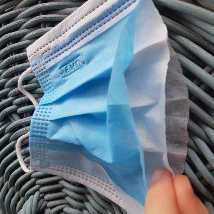 Dibuat dengan teknologi 3 lapis (3-ply) yang efektif. Lapisan luar menggunakan bahan spunbond yang tahan terhadap percikan air, sedangkan lapisan tengah berupa filter meltblown yang dirancang khusus untuk menyaring partikel halus, debu, dan bakteri.