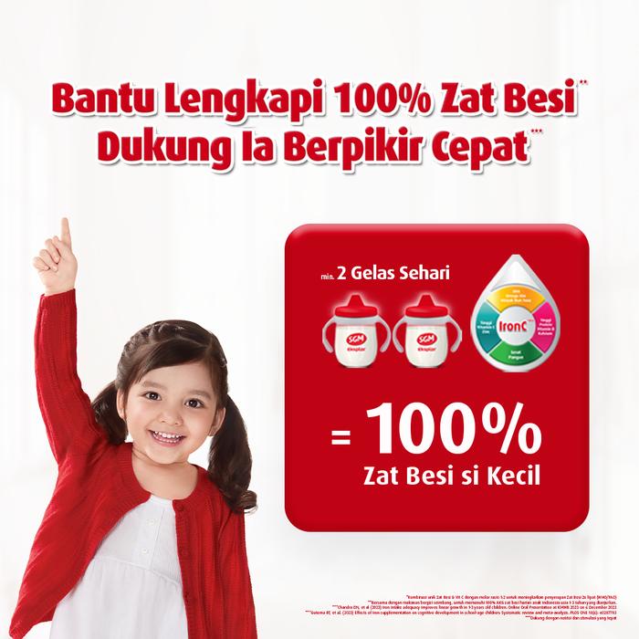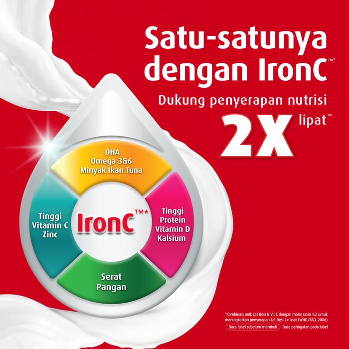 - IronC: Merupakan kombinasi unik antara Zat Besi dan Vitamin C dengan rasio molar 1:2. Berdasarkan penelitian WHO/FAO (2006), kombinasi ini terbukti secara ilmiah dapat meningkatkan penyerapan Zat Besi dalam tubuh hingga dua kali lipat, yang penting untuk mencegah anemia dan mendukung konsentrasi belajar.