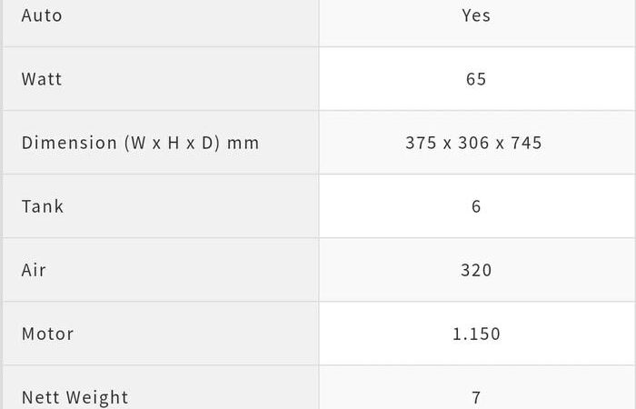 | Kapasitas Tangki Air | 6 Liter |