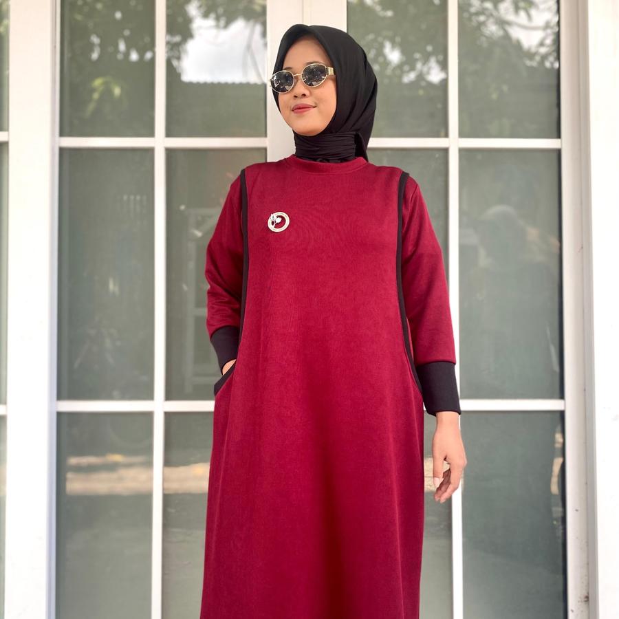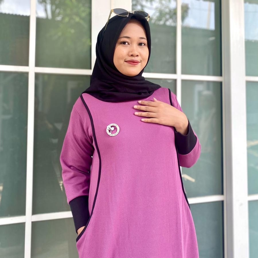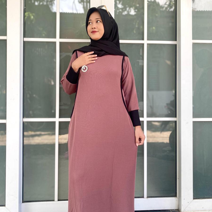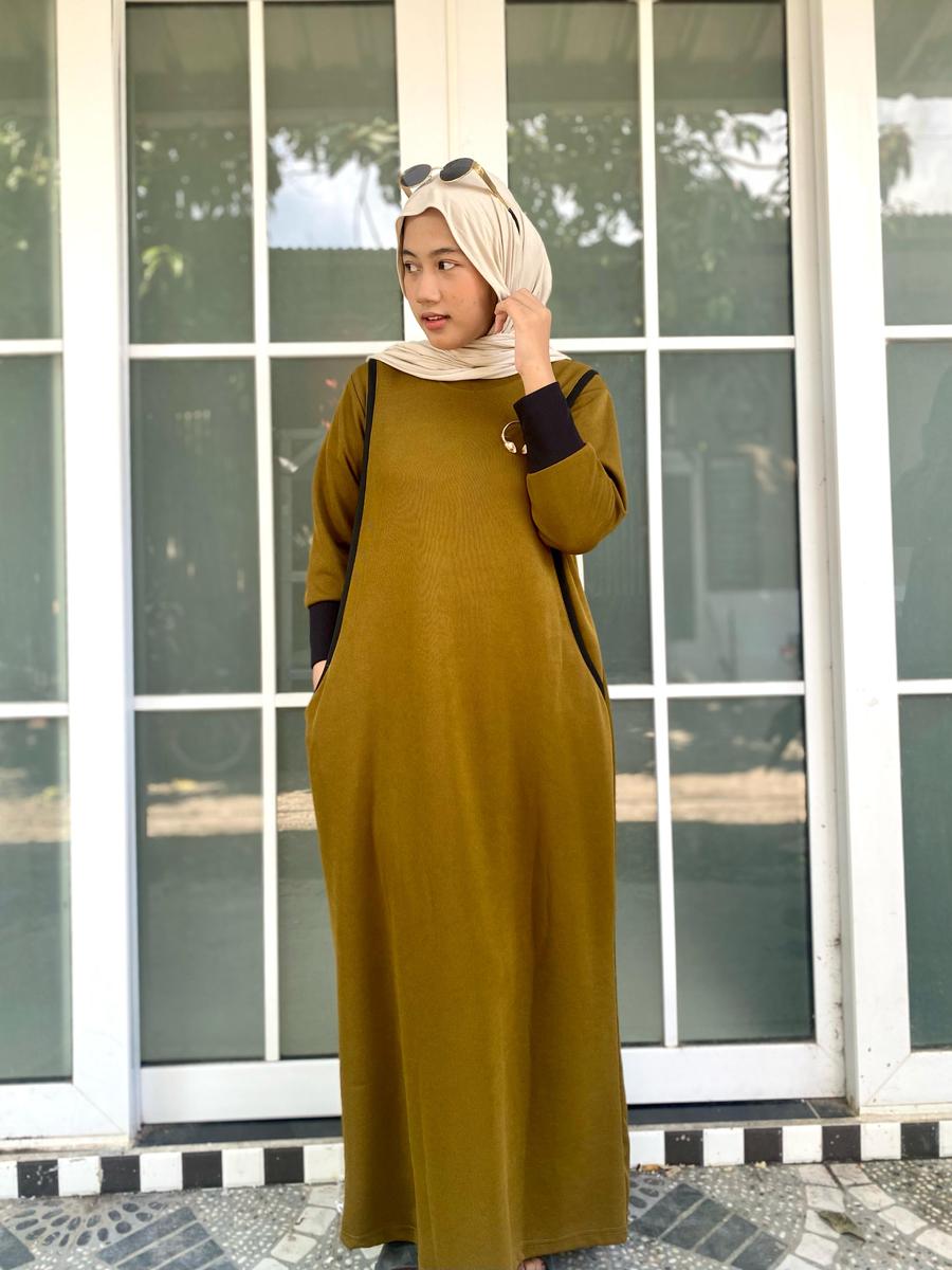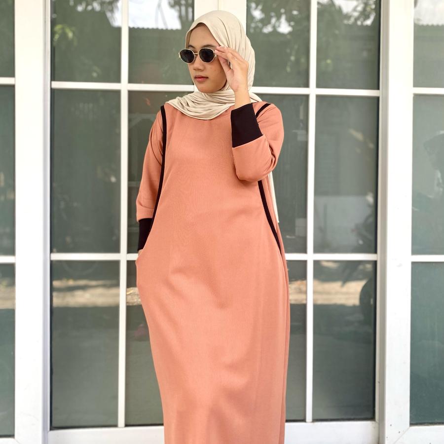 - Gaya minimalis dengan detail strip hitam yang timeless, cocok dikombinasikan dengan jilbab atau aksesori apa pun.