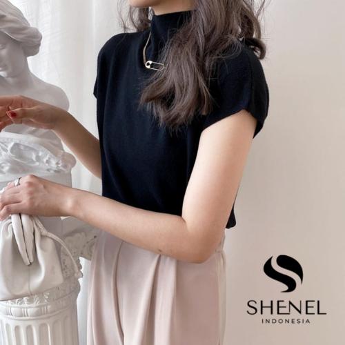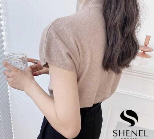 ModelTurtleneck lengan pendek dengan gaya Korean Style, cardigan polos, dan crop.