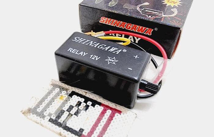 - Relay: Komponen elektromekanikal yang bertindak sebagai saklar. Dibutuhkan arus listrik kecil untuk mengontrol sirkuit yang memiliki arus listrik lebih besar, seperti klakson, sehingga meningkatkan performa dan melindungi saklar utama pada setang motor/stang kemudi.