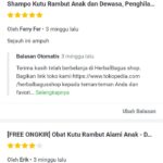 | Manfaat Utama | Membasmi kutu & telur, menghilangkan gatal, melembutkan, mencegah ketombe. |