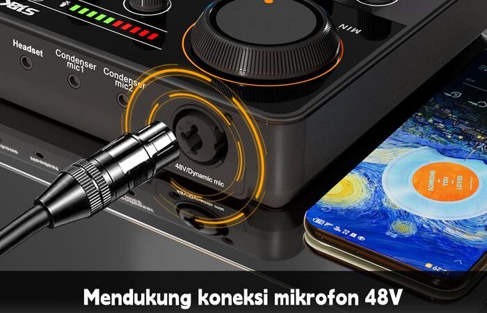- Phantom Power 48V: Sumber daya yang dikirim melalui kabel XLR untuk menyalakan mikrofon kondenser agar dapat menangkap suara dengan lebih detail dan jernih.