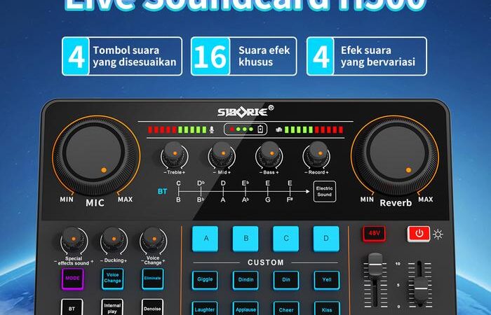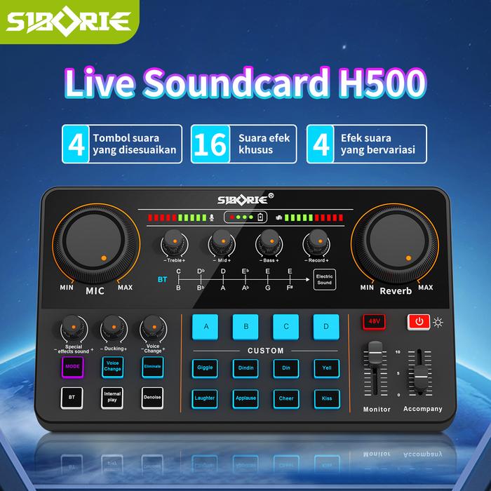 Tingkatkan kualitas audio streaming, karaoke, dan rekaman Anda dengan Siborie H500 Live Soundcard. Tersedia dalam tiga pilihan warna elegan: hitam, putih, dan pink. Perangkat all-in-one ini didesain untuk memenuhi kebutuhan konten kreator, musisi, dan profesional audio dengan fitur lengkap dan kemudahan penggunaan.