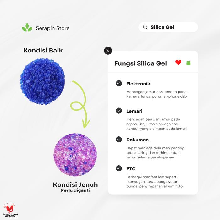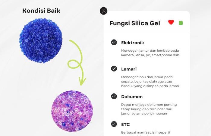 | Fungsi Utama | Menyerap kelembaban, mencegah jamur, dan melindungi dari karat. |