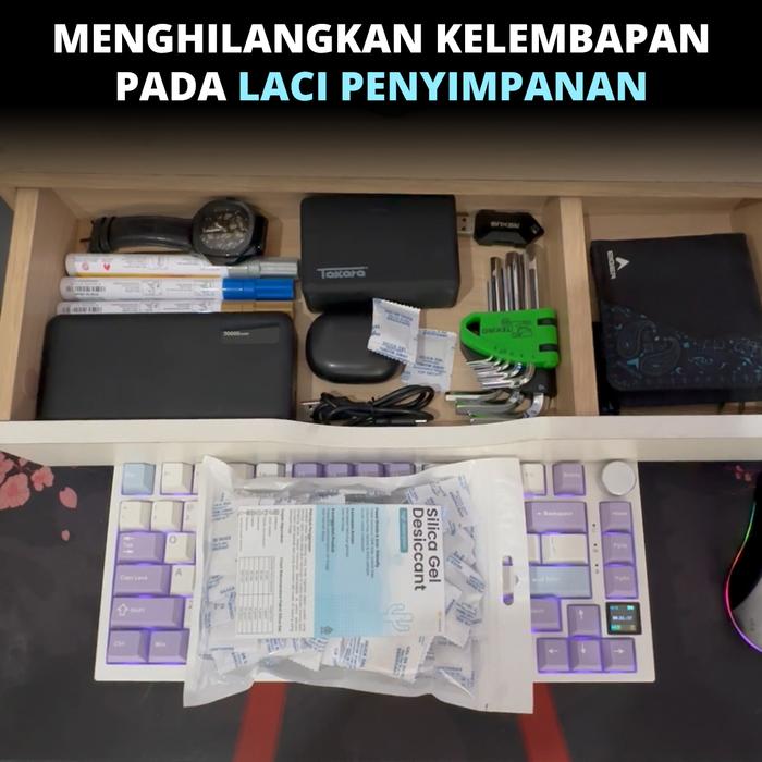 Ideal untuk dimasukkan ke dalam lemari pakaian, kotak sepatu, tas, safe, container pengiriman, hingga kotak penyimpanan perhiasan untuk menciptakan lingkungan yang kering dan bebas jamur.