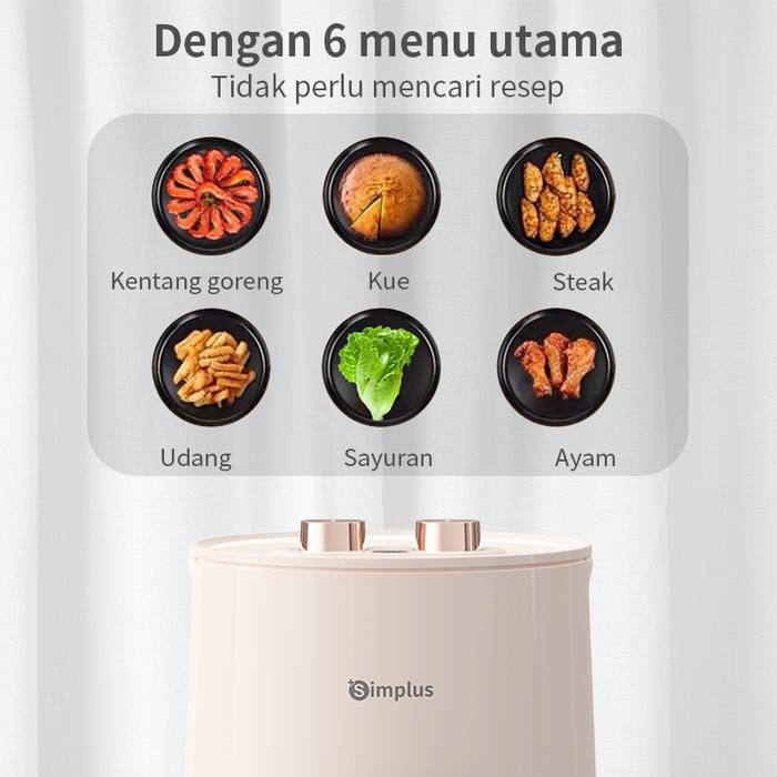 Hadirkan solusi memasak sehat dan praktis untuk keluarga dengan SIMPLUS Air Fryer. Dengan daya rendah hanya 650W, perangkat ini sangat hemat listrik namun tetap powerful. Kapasitasnya yang besar, 4 Liter, cocok untuk memenuhi kebutuhan gizi seluruh keluarga.