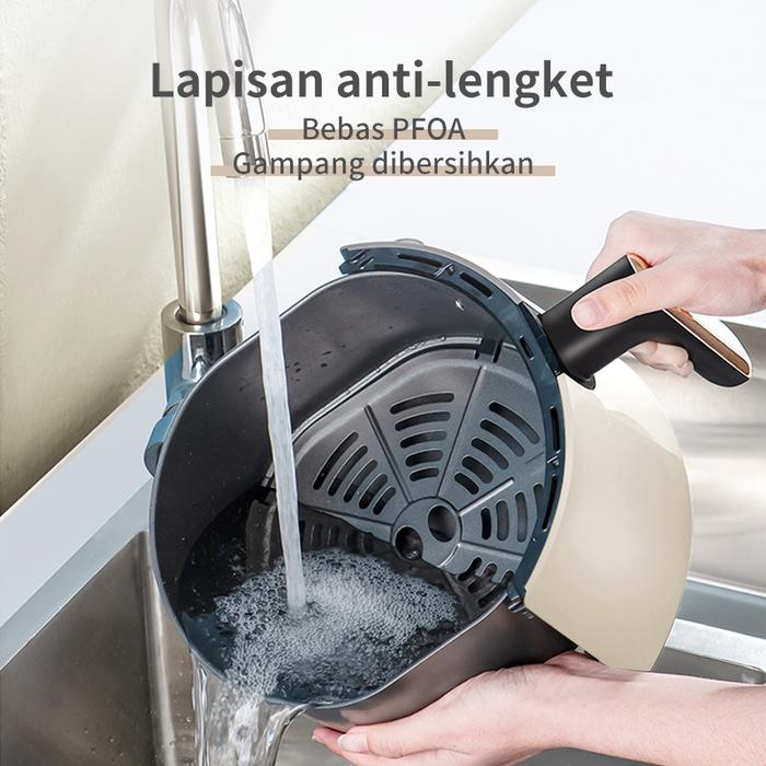 - Lapisan Non-Stick Premium: Dilapisi bahan anti-lengket yang bebas dari PFOA, membuat makanan tidak menempel dan sangat mudah dibersihkan setelah digunakan.