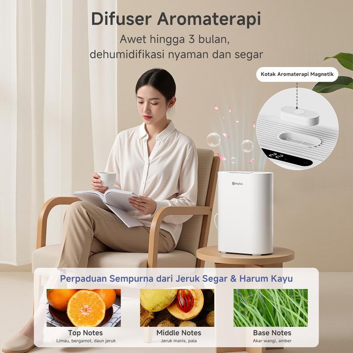 Nikmati tidur dan aktivitas yang lebih nyaman berkat teknologi operasi super senyap hanya 35dB, setara dengan bisikan pelan. Fitur unggulannya adalah kotak aromaterapi yang dapat Anda isi dengan essential oil favorit. Sebarkan aroma terapi yang menenangkan sekaligus menyerap kelembaban, menciptakan lingkungan yang kering, segar, dan wangi.