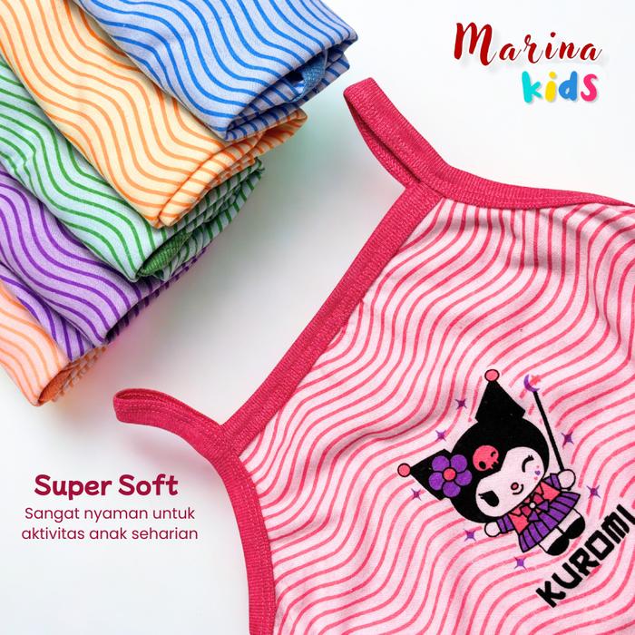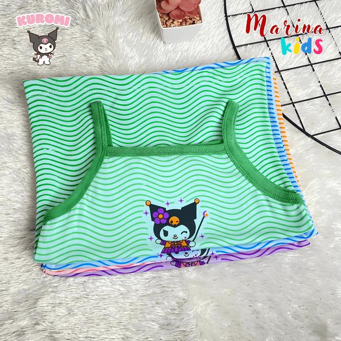 Temukan pakaian dalam yang paling nyaman untuk aktivitas harian buah hati Anda! Singlet Marina hadir dengan motif karakter Kuromi yang disukai anak-anak, dibuat dengan bahan Cotton Carded yang lembut dan menyerap keringat. Tersedia dalam paket hemat [3pcs, 6pcs, 12pcs] dengan pilihan warna-warna cerah dan ceria.