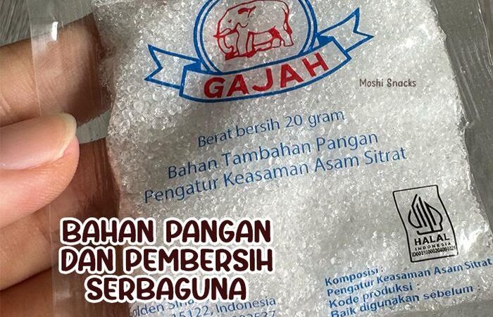 Dapatkan kemasan praktis Sitrun Cap Gajah untuk segala kebutuhan rumah tangga Anda. Tersedia dalam dua pilihan ukuran: 20gr dan 50gr. Produk ini merupakan Citric Acid Food Grade (Asam Sitrat Pangan) murni berbentuk kristal putih halus, sangat mudah larut dan memberikan rasa asam yang tajam dan alami.