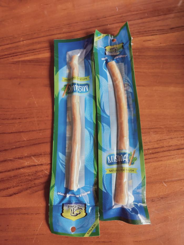 Siwak: Merupakan batang kayu yang berasal dari pohon Salvadora persica (pohon Arak). Bagian ujungnya yang berserat berfungsi seperti sikat untuk membersihkan gigi, sementara getah dan kandungan alaminya bekerja sebagai pembersih dan antibakteri mulut alami. Penggunaannya sangat dianjurkan dalam tradisi Islam.