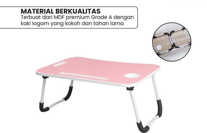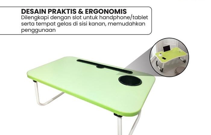 Meja lipat portabel ini dirancang untuk kebutuhan multifungsi, seperti meja laptop, meja belajar, atau meja kerja. Terbuat dari material berkualitas dengan permukaan halus dan desain elegan, meja ini dilengkapi slot handphone/tablet serta tempat gelas di sisi kanan. Praktis dan nyaman digunakan sehari-hari!