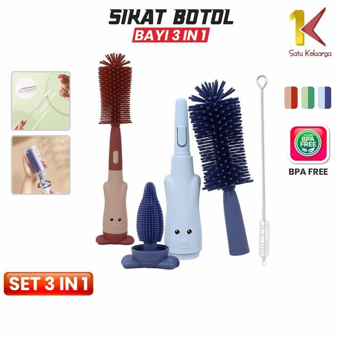 | Set 3in1 | Sikat botol, sikat sedotan, dan sikat dot dalam 1 kemasan praktis. |