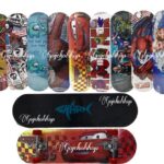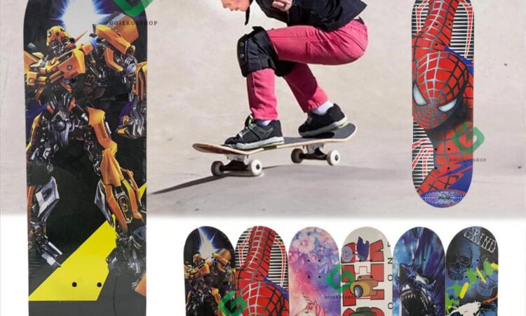 - Deck: Papan pijakan utama pada skateboard, biasanya terbuat dari kayu maple yang dilapisi.
