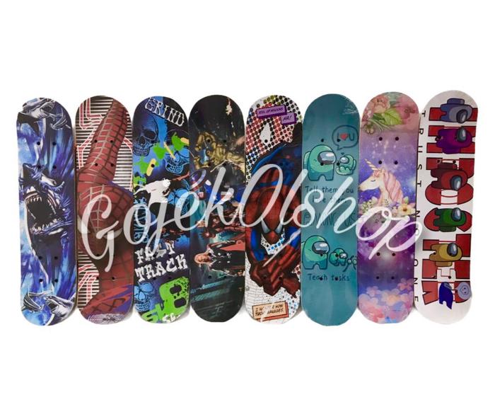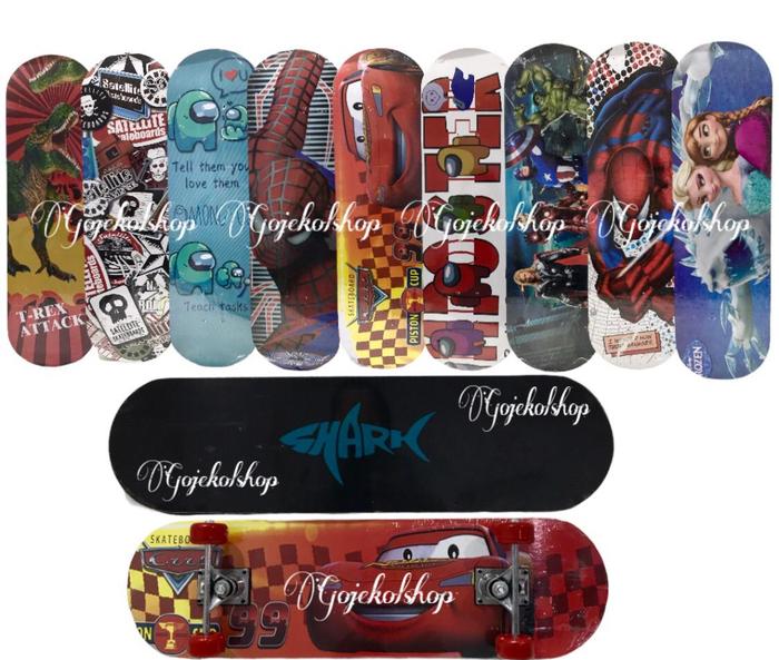Dapatkan skateboard berkualitas dengan desain yang disukai anak! Deck terbuat dari material pilihan yang kuat dengan permukaan atas berupa AMPLAS HITAM untuk grip yang maksimal, sehingga kaki tidak mudah terpeleset. Dilengkapi dengan roda bening dari bahan karet berkualitas untuk pergerakan yang halus dan minim getaran, serta dasar deck dengan motif yang menarik.
