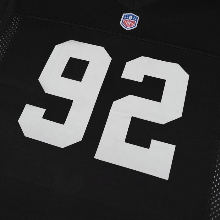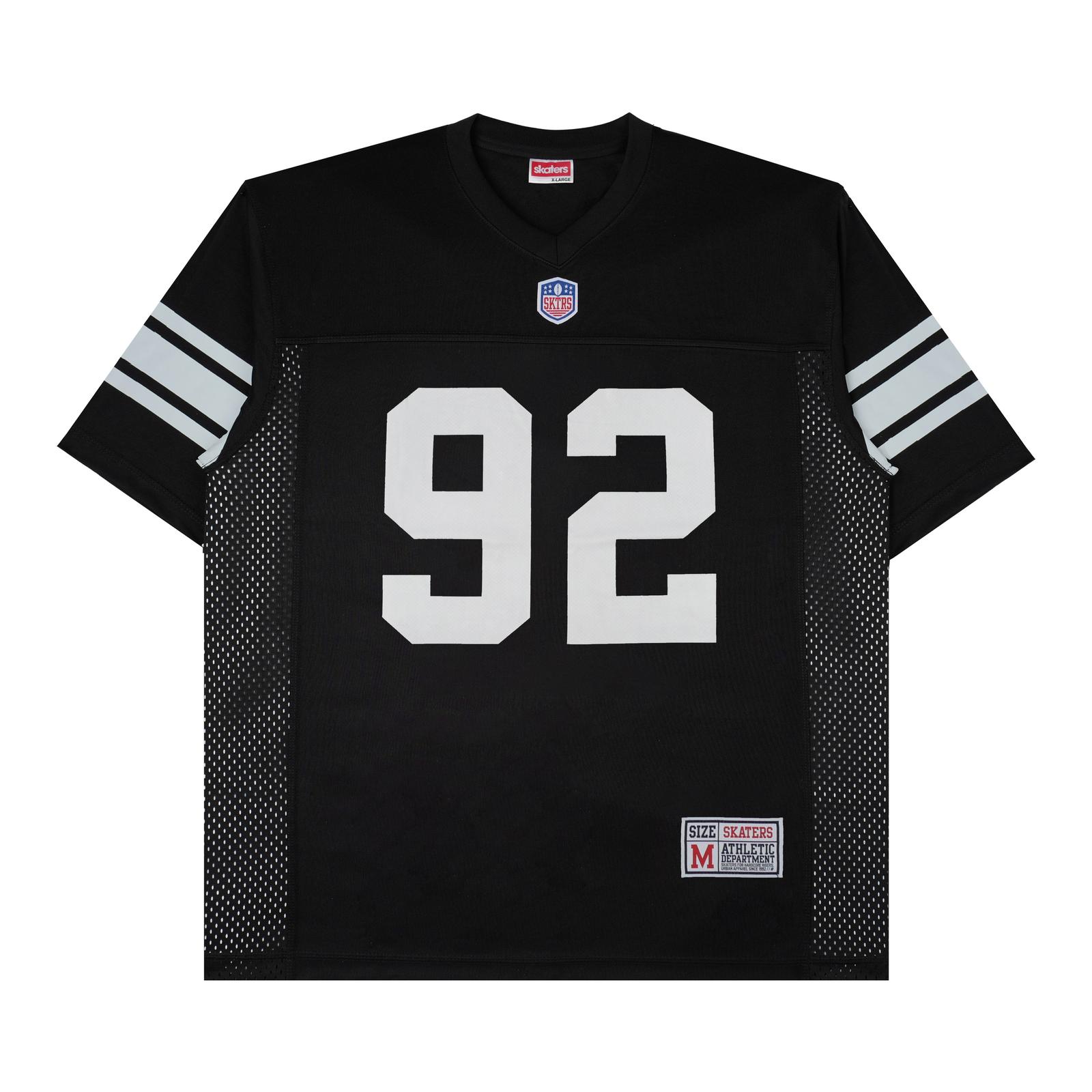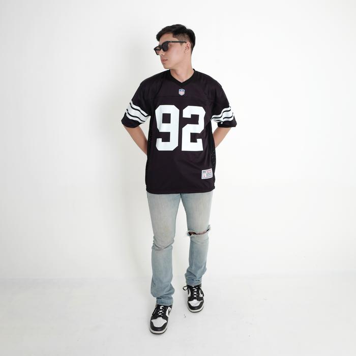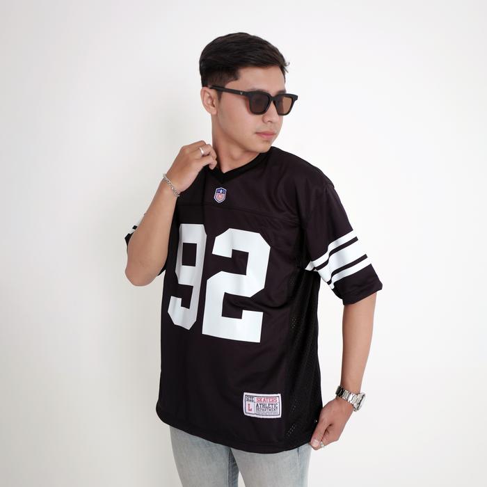 Tersedia dalam warna hitam yang elegan. Sablon menggunakan teknik plastisol untuk hasil yang tahan lama dan detail yang tajam. Bahan jersey memberikan tekstur bertekstur seperti kaos rugby otentik, ringan, dan sangat nyaman untuk dipakai sehari-hari.