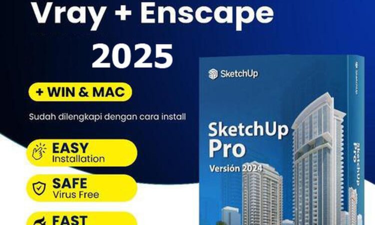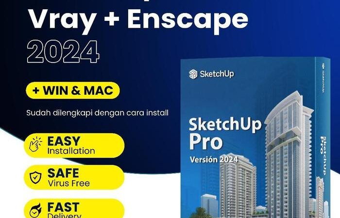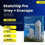Dapatkan kemudahan dan kelengkapan dalam mendesain dengan SketchUp Pro 2024 terbaru yang sudah termasuk plugin render V-Ray dan Enscape. Paket ini merupakan versi lengkap (full version) yang kompatibel dengan sistem operasi Windows 10, Windows 11, dan macOS. Tersedia juga berbagai versi tahunan dari 2016 hingga 2025 untuk memenuhi kebutuhan spesifik proyek Anda.