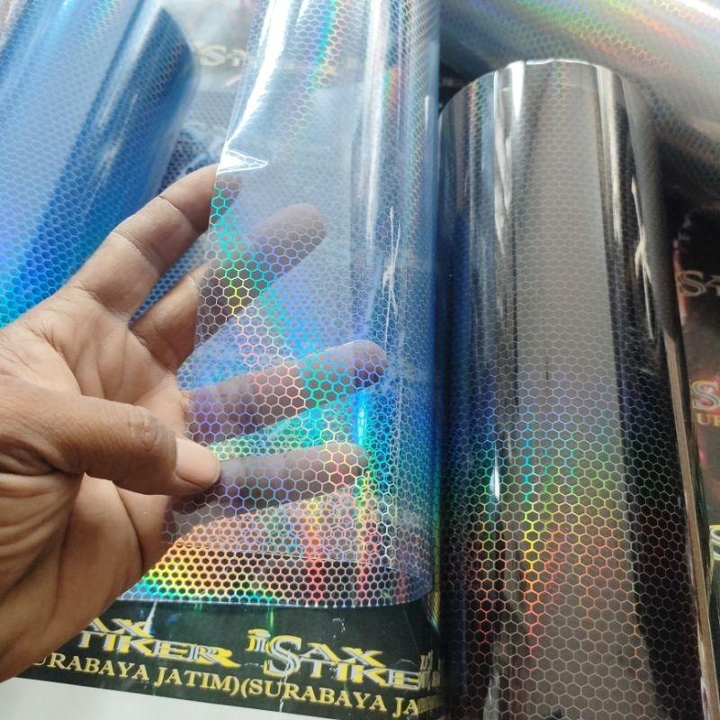 Tingkatkan tampilan kendaraan Anda dengan Skotlet Hybrid Hologram motif sarang tawon yang transparan dan tembus pandang. Material mika berkualitas tinggi ini memberikan efek hologram yang memukau, memantulkan cahaya lampu dengan gemerlapan maksimal untuk menciptakan kesan premium dan futuristik. Cocok diaplikasikan pada lampu sepeda motor, mobil, serta berbagai kebutuhan modifikasi otomotif lainnya. Mudah dipasang dan dipotong sesuai kebutuhan.