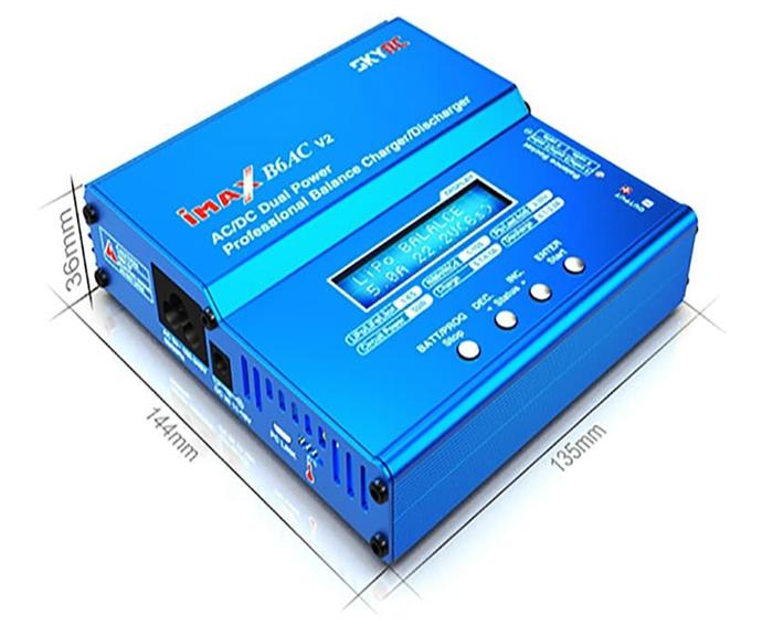 Dibekali fitur canggih seperti koneksi PC, kendali mikroprosesor, individual cell balancing, dan store function untuk penyimpanan baterai yang aman. Charger ini kompatibel untuk Li-ion, LiPo, LiFe, Ni-Cd, NiMH, dan baterai Pb.