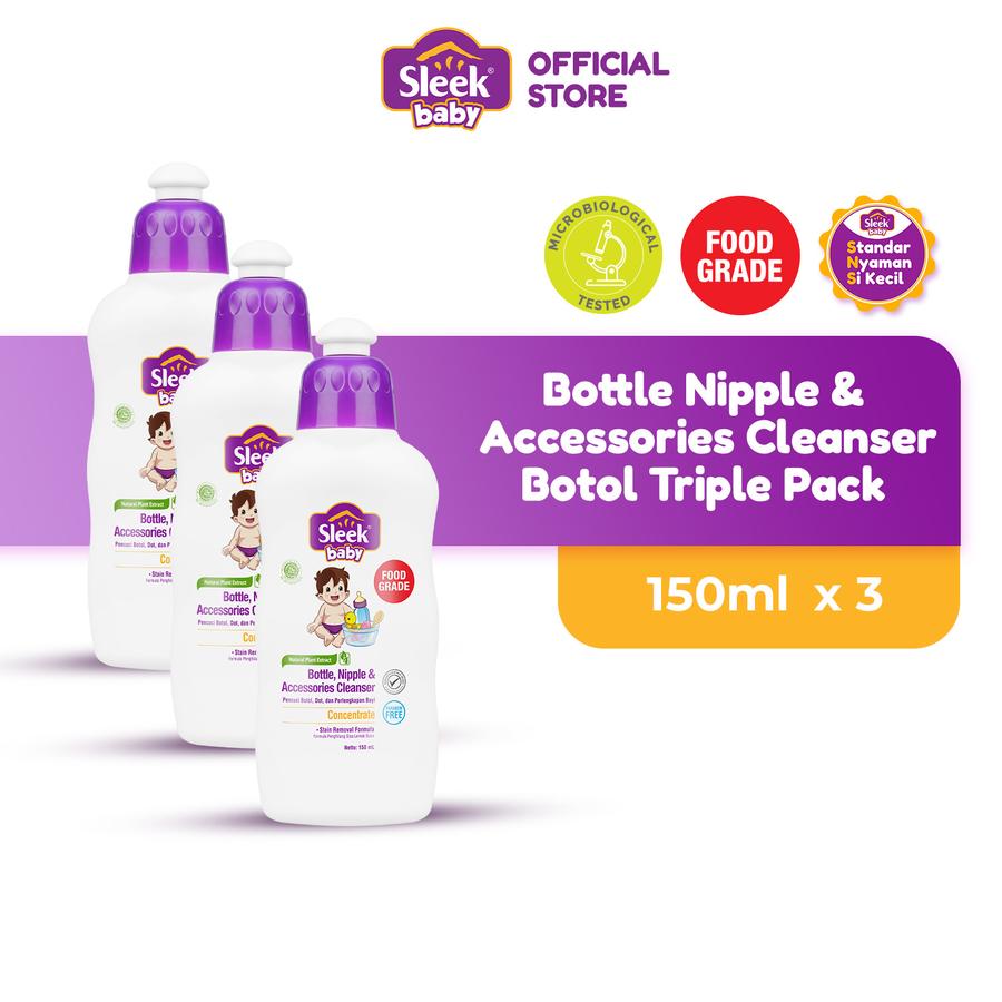 | Isi Paket | 3 botol Sleek Baby Bottle Nipple & Accessories Cleanser (150ml/botol) |