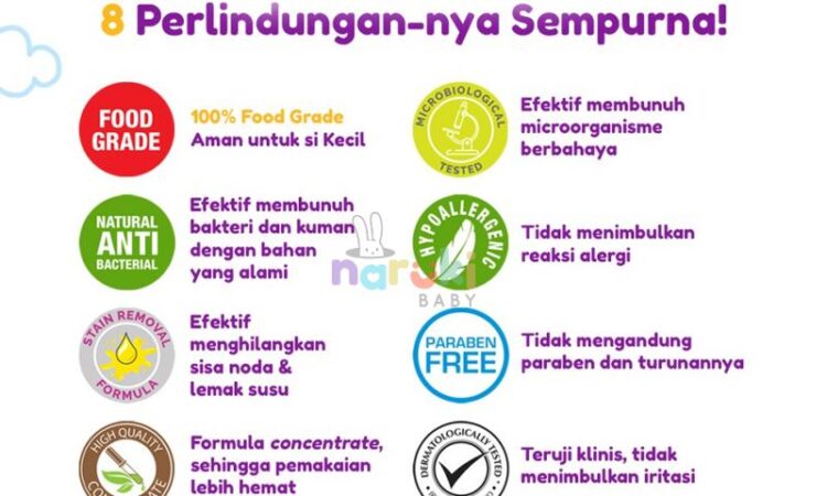 | Manfaat | – Membersihkan sisa susu, lemak, dan bakteri pada botol/dot bayi. |