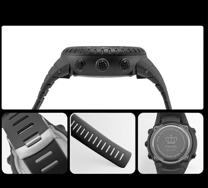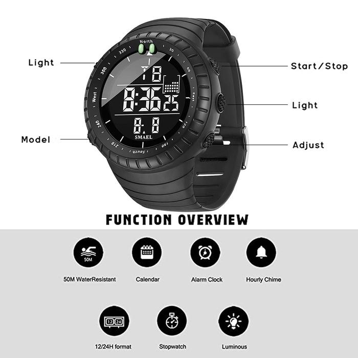 Jam tangan digital SMAEL 1237 adalah perpaduan sempurna antara desain futuristik dan ketangguhan untuk mendukung aktivitas harian maupun olahraga Anda. Dengan ketahanan air hingga 50 meter (5 ATM), jam ini siap menemani Anda dari rutinitas sehari-hari hingga kegiatan renang ringan. Tampilannya yang stylish dengan diameter 5.0 cm cocok untuk dikenakan baik oleh pria maupun wanita.