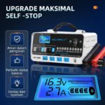✅ Pengisian Otomatis & Aman: Berhenti otomatis saat baterai penuh (mode float), mencegah overcharging yang merusak aki.