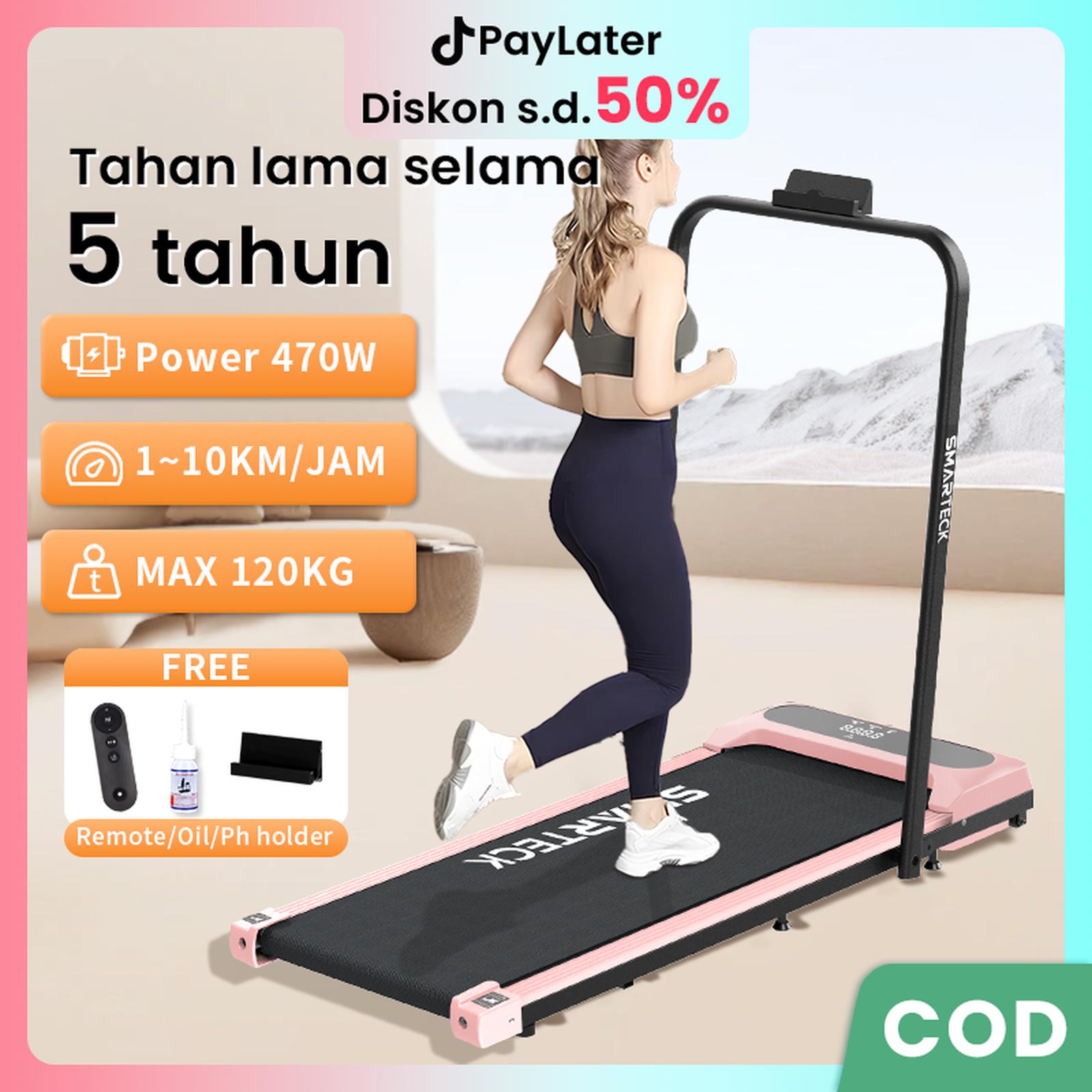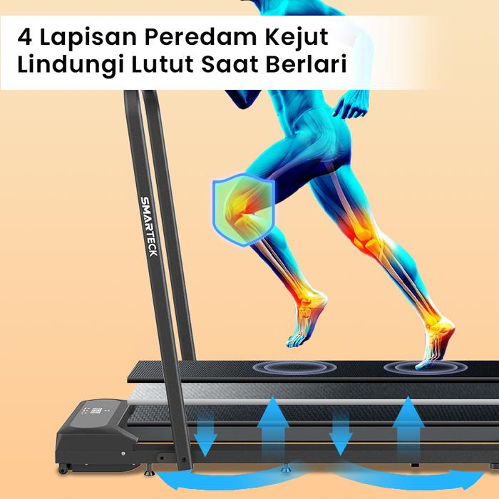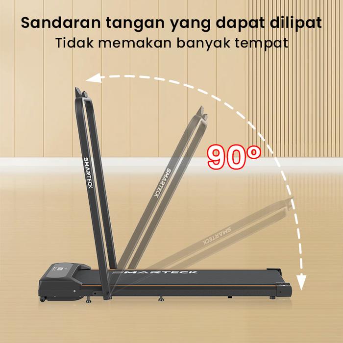 Hadir untuk menjawab kebutuhan olahraga praktis di rumah, Smarteck Treadmill SMT01 adalah walking pad elektrik lipat yang dirancang tanpa mengorbankan performa. Dengan tenaga kuda 1.75HP dan kapasitas beban maksimal 120KG, alat ini mampu menopang berbagai jenis tubuh dengan stabil selama sesi jogging atau jalan cepat. Kecepatannya dapat disesuaikan dengan presisi melalui remote control nirkabel, mulai dari 1 hingga 10 KM/jam yang terbagi dalam 10 level (10 gigi), memungkinkan Anda mengatur intensitas latihan sesuai tujuan kebugaran.