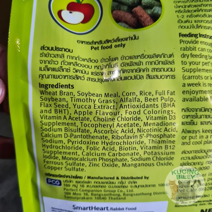 Dukung masa tumbuh optimal dan kesehatan harian kelinci dewasa Anda dengan Smartheart Makanan Kelinci 1kg. Formulasi pelet ini dirancang khusus untuk memenuhi kebutuhan nutrisi lengkap dan seimbang, mendukung perkembangan tulang yang kuat serta gigi yang sehat. Kandungan nutrisinya yang kaya juga memperkuat sistem pencernaan dan menjaga kesehatan kulit serta bulu kelinci kesayangan Anda agar tetap lembut dan berkilau.
