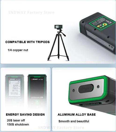 Tingkatkan efisiensi kerja Anda dengan teknologi laser hijau terbaru dari Sndway! Dirancang khusus untuk penggunaan outdoor, laser hijau memberikan visibilitas hingga 4x lebih terang dibandingkan laser merah, memudahkan pengukuran bahkan di bawah sinar matahari terik. Dapatkan akurasi tinggi dan berbagai fitur canggih dalam satu perangkat.