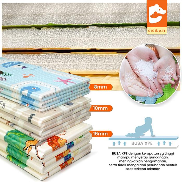 Berikan ruang bermain yang aman dan nyaman untuk si kecil dengan Playmat Premium Sni Didibear. Karpet lipat ini dirancang khusus untuk mendukung setiap tahap perkembangan bayi, mulai dari belajar tengkurap, merangkak, duduk, hingga berjalan.