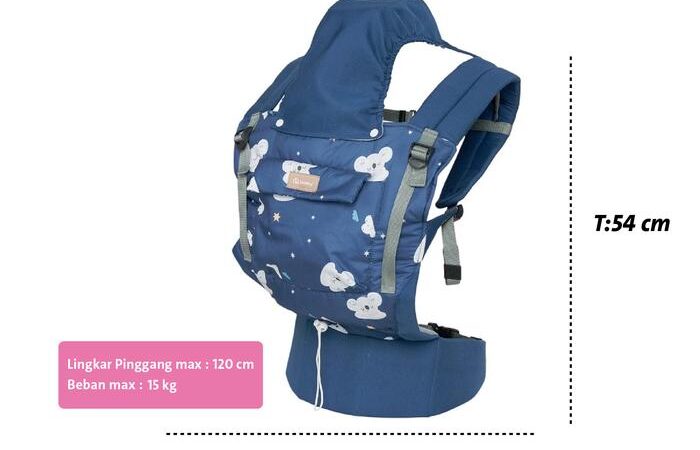 | Fitur Keunggulan | Tali serut penyesuai ukuran bayi, Tali pengatur tinggi gendongan, Tali pinggang berkunci sodok yang kuat, serta Hood/topi yang dapat dilepas. |