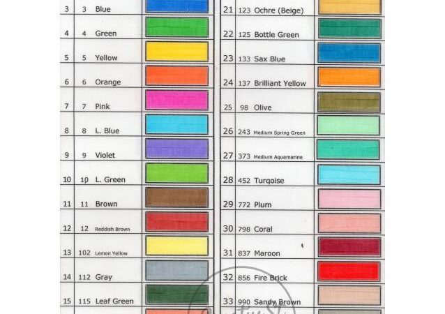Pena ini hadir dalam 36 warna eksklusif yang spektakuler, dari warna-warna dasar hingga warna khusus yang unik. Setiap warna memiliki kode khusus untuk memastikan akurasi. Kami sangat menyarankan untuk memilih warna berdasarkan kode yang tertera pada tabel, karena hasil foto dapat bervariasi akibat pencahayaan dan setting kamera.