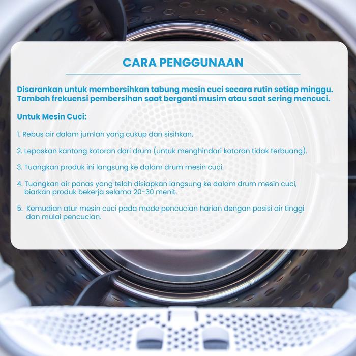 | Penggunaan Mudah | Cukup tuang ke drum, jalankan siklus cuci, dan biarkan produk bekerja. Hemat waktu dan tenaga. |
