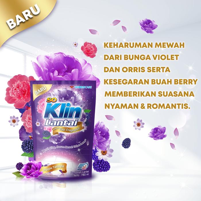 Wujudkan lantai bersih, kilap, dan wangi mewah sepanjang hari dengan So Klin Lantai Purple Twilight. Formulanya yang khusus dirancang tidak hanya membersihkan kotoran membandel tetapi juga memberikan perlindungan maksimal terhadap kuman. Rasakan sensasi keharuman Fine Fragrance Purple Twilight yang elegan dan tahan lama, menghadirkan nuansa seperti spa di rumah Anda.