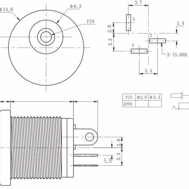 | Varian Tersedia | 1. Mur Kecil 2.1mm 2. Mur Kecil 2.5mm 3. DC Mur Besar 4. DC PCB Mount |