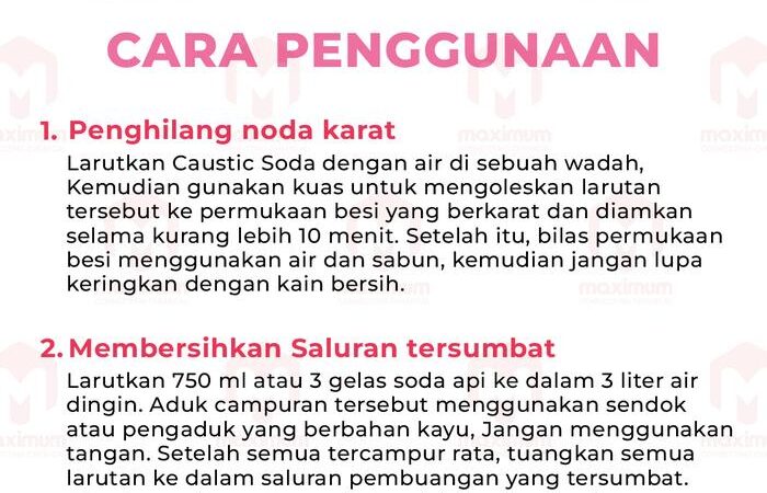 - Soda Api / Caustic Soda / NaOH / Natrium Hidroksida: Senyawa kimia basa kuat yang sangat reaktif, terutama terhadap lemak, minyak, dan material organik lainnya. Sangat efektif untuk membersihkan dan melarutkan sumbatan.
